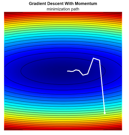 To mitigate this, we can add momentum. Instead of calculating the step based solely on the current gradient, we maintain a velocity vector that accumulates the history of past gradients.