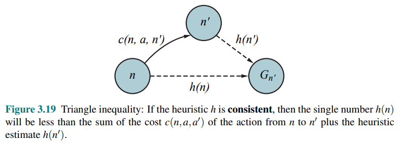 In addition, with a consistent heuristic, the first time we reach a state it will be on an optimal path, so we never have to re-add a state to the frontier, and never have to change an entry in reached. With an inconsistent heuristic, we may end up with multiple paths reaching the same state, and if each new path has a lower path cost than the previous one, then we will end up with multiple nodes for that state in the frontier, costing us both time and space.
