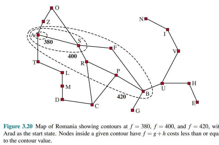 A useful way to visualize a search is to draw contours in the state space, just like the contours in a topographic map.