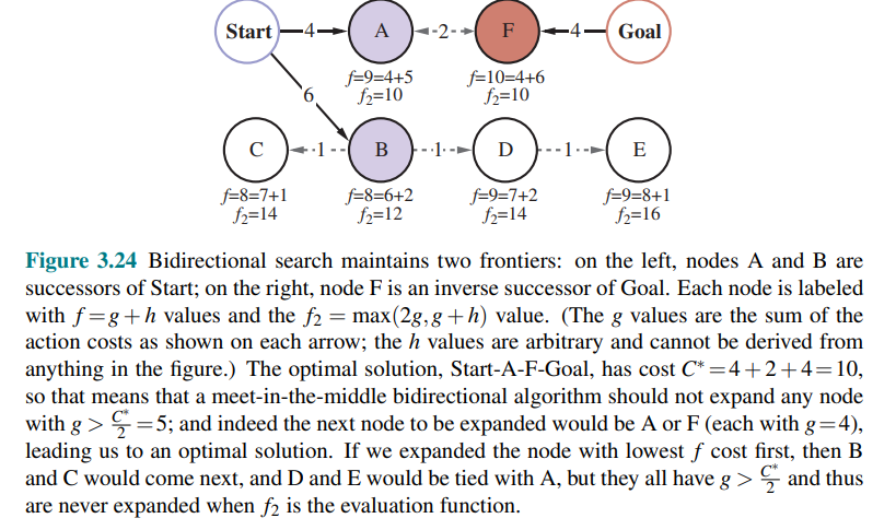 The following figure works through an example bidirectional search: