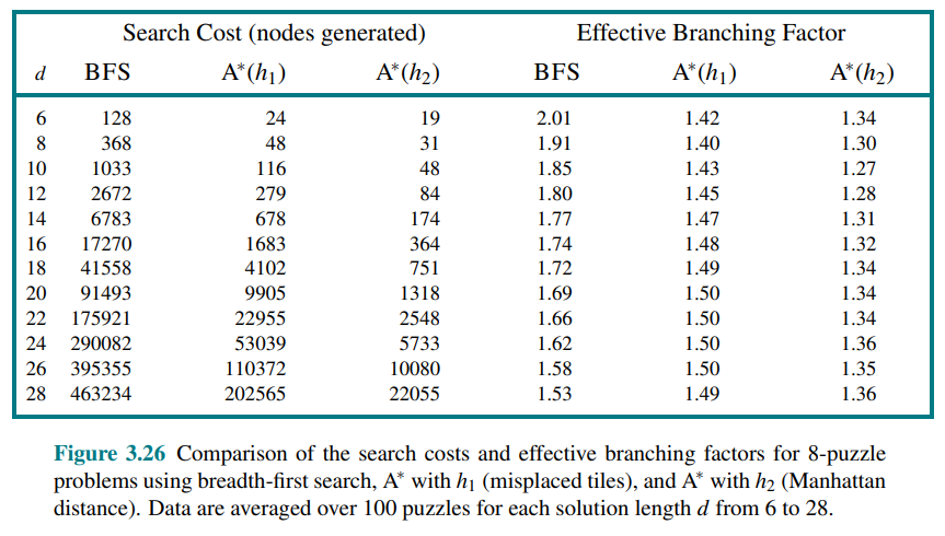 One way to characterize the quality of a heuristic is the effective branching factor