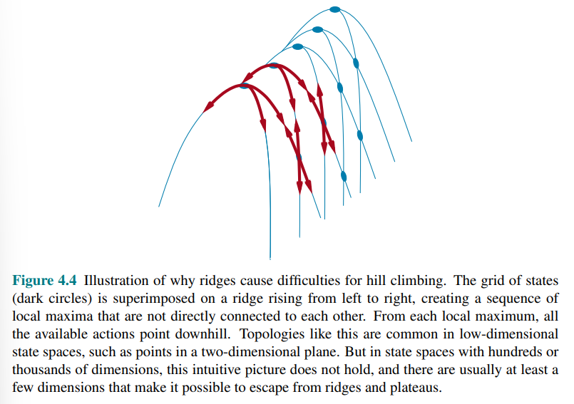 - Ridges: result in a sequence of local max that is very difficult for greedy algorithms to navigate
