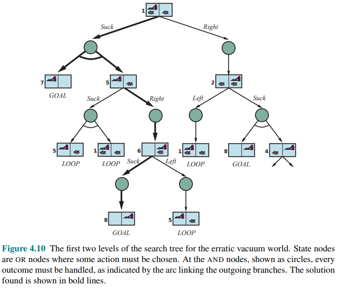 - AND Nodes: for example the Suck action in state 1 results in the belief state