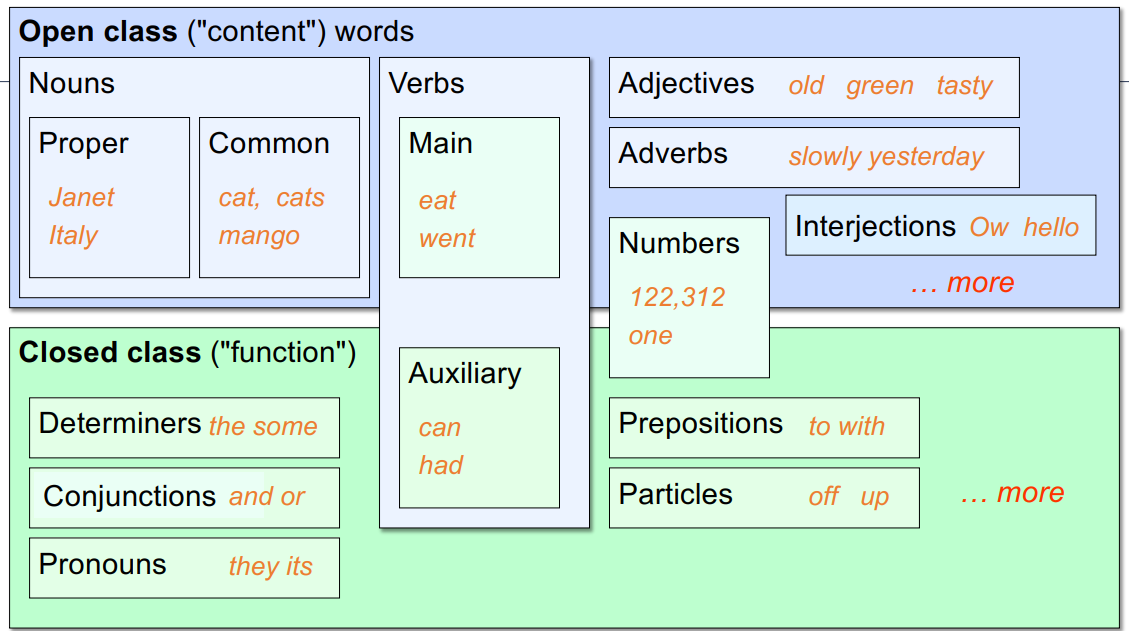 Open-class words usually consist of content words: nouns (including proper nouns), verbs, adjectives, and adverbs:
