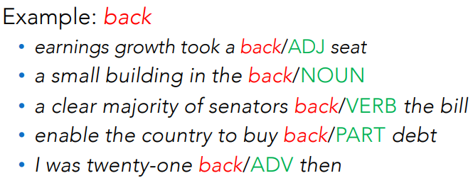 - Need to control for POS when studying linguistic change like the creation of new words, or meaning shift.