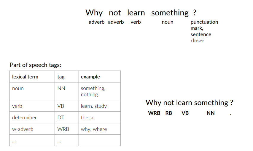 - Prerequisite: NLP - Lecture 2,3 - Elements of Linguistics, in particular the syntax section.