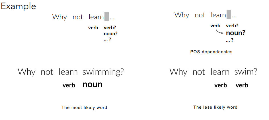 - words in a sentence naturally influence each others: HMM captures this indirectly via tag transitions