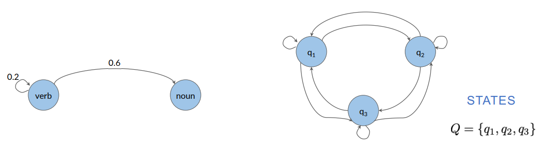 A Markov chain is a model that expresses the probabilities of sequences of random variables, the states, taking values from some set. Words, tags, or symbols representing anything, e.g., the weather.
