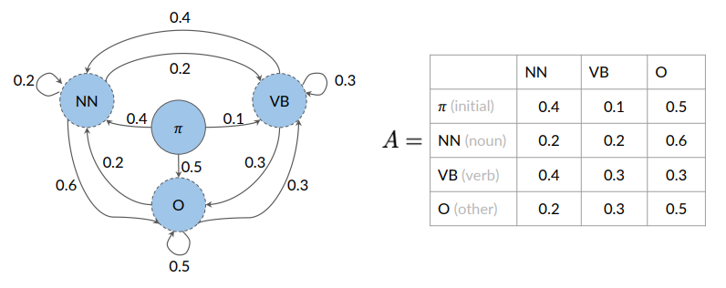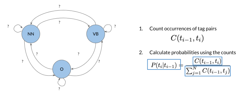 The idea is that the likelihood of the next word’s POS tag in a sentence tends to depend on the POS tag of the previous word.
