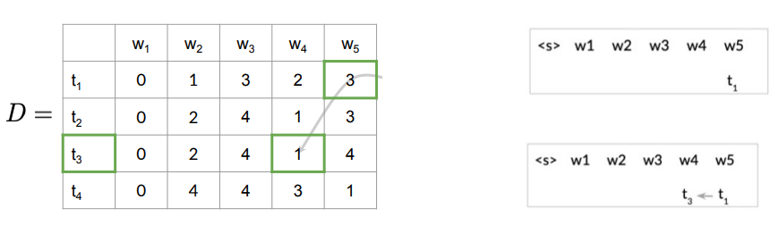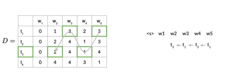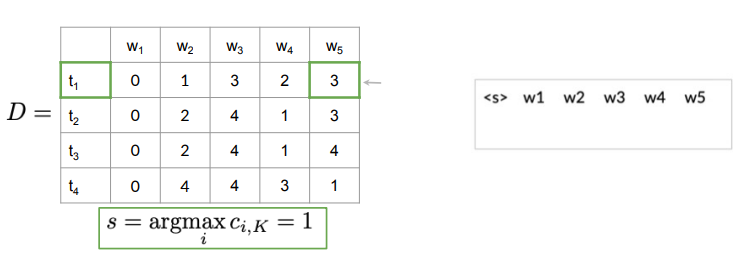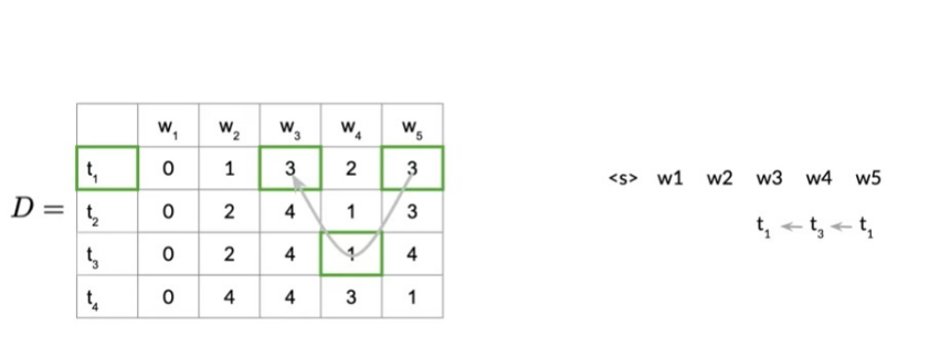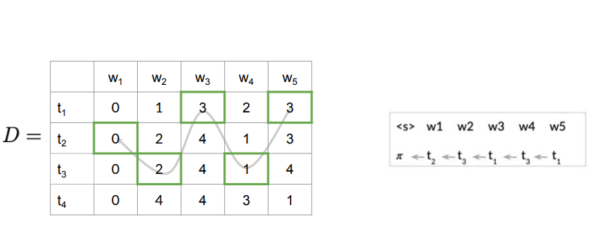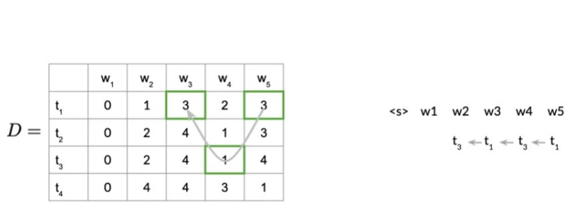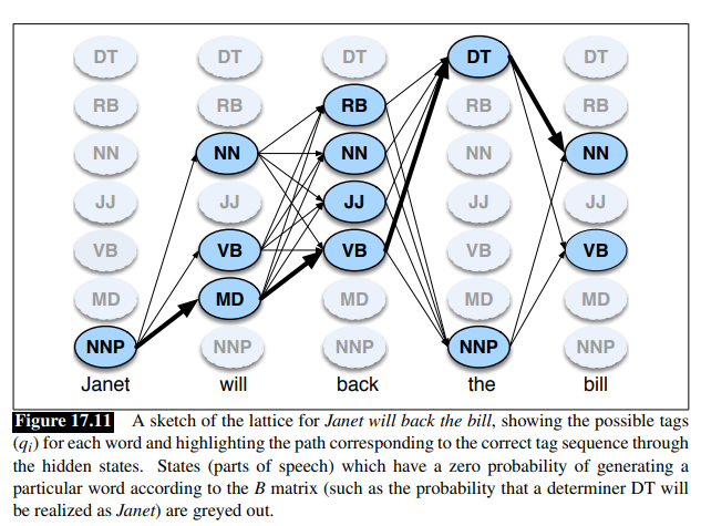 - If you fill the lattice and backtrace, it should return the gold state sequence NNP MD VB DT NN