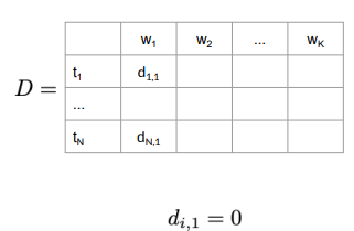 The first column has all entries 0 as there are no preceding POS tags traversed.