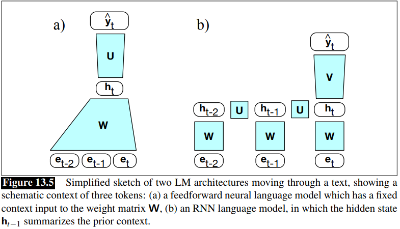 RNNs don’t have the limited context problem of n-gram models or the fixed context of feedforward language modele. Since the hidden state can, in principle, represent information about all the preceding words back to the beginning of the sequence.