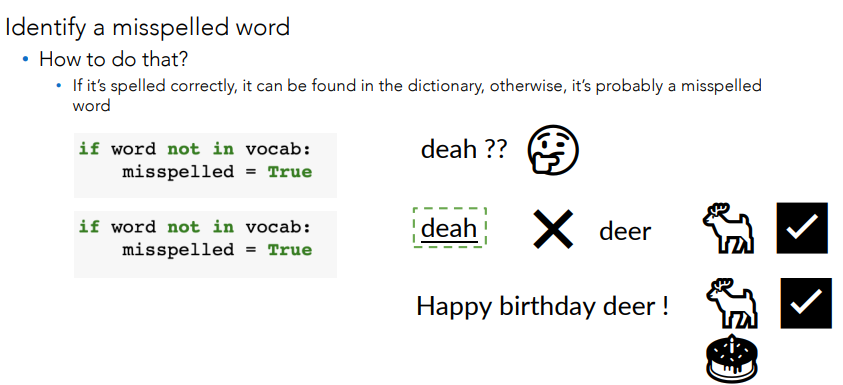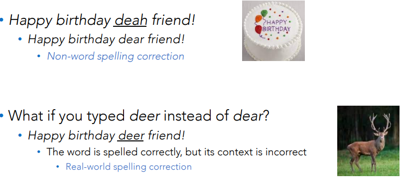 - cannot detect real-word errors (e.g., “dear” vs “deer”)