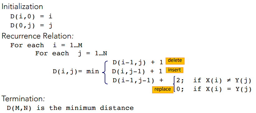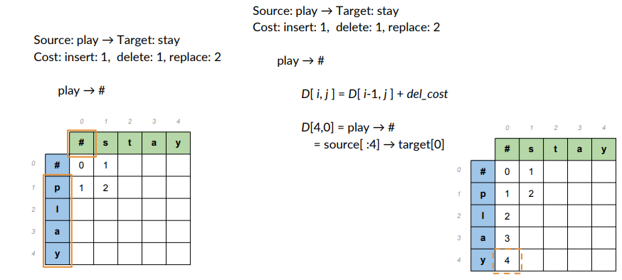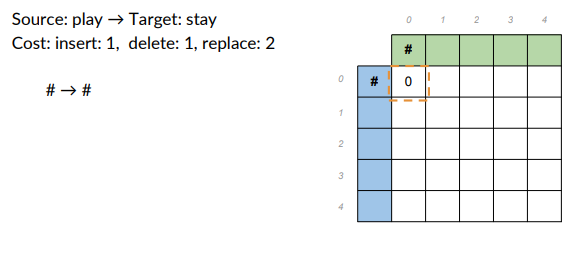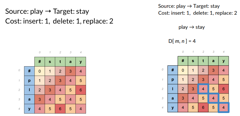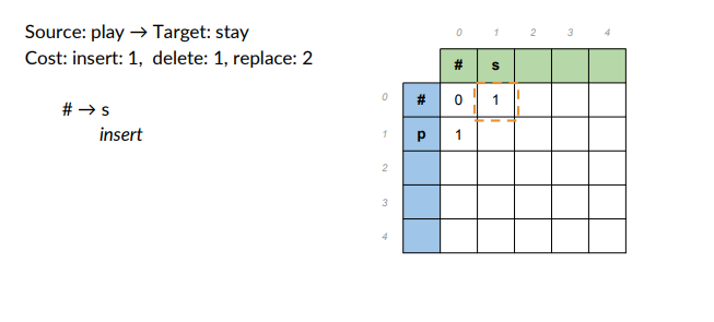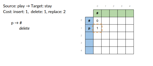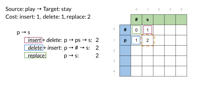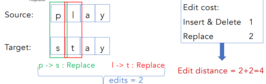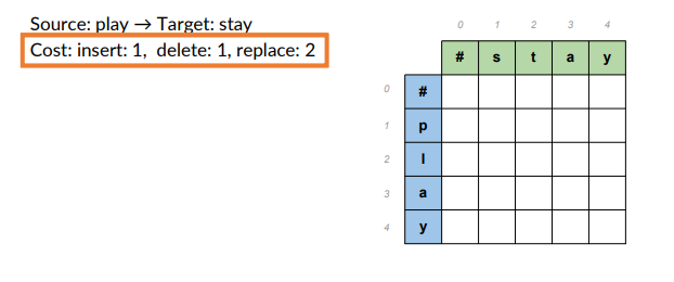 - Cost: insert 1, delete1, replace 2.