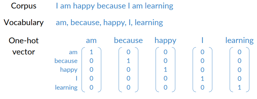 - Encode each word as one-hot vector of size |V|