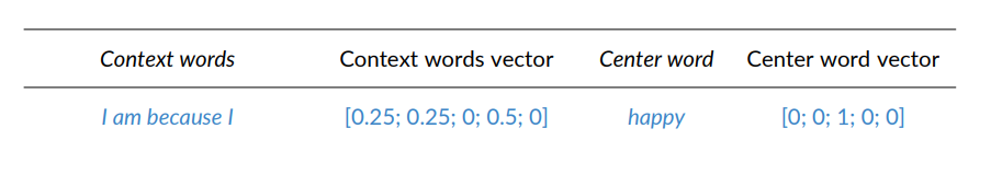 To train the models, one needs a set of examples. Context words and the center word to predict, each.