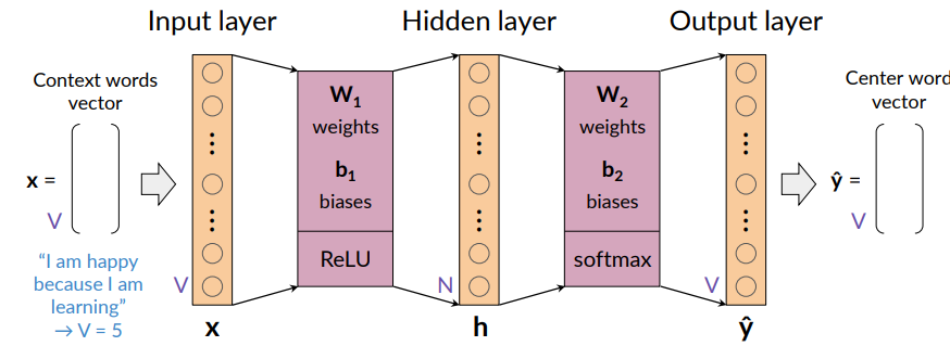 To feed the context words into the model and to predict and central word, they must be suitably represented.