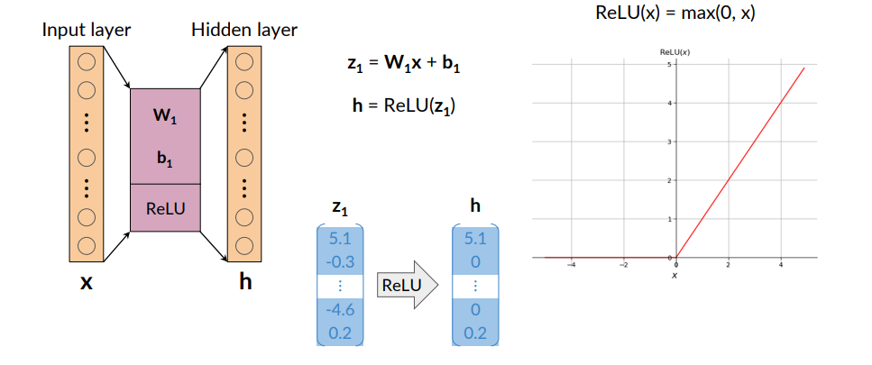 To map from input layer to hidden layer, we compute weights and biases and apply ReLu. Then From hidden layer to output layer we compute weights and biased and apply softmax function