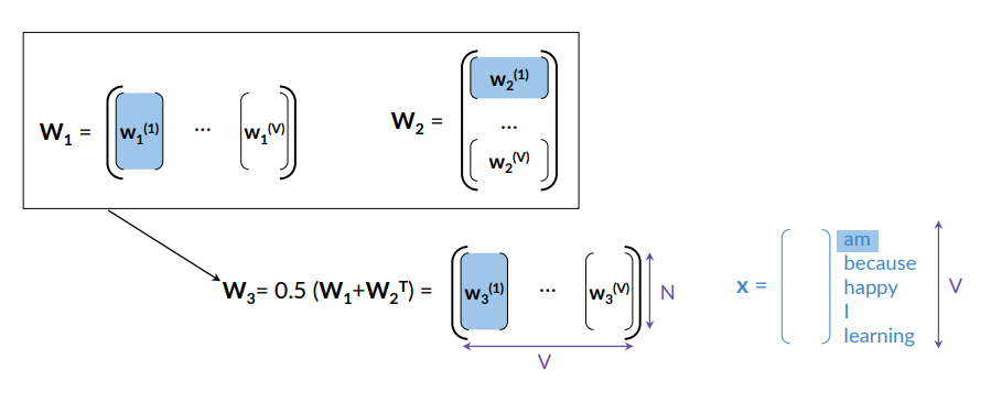 - First, create the vocabulary V of unique words in the corpus