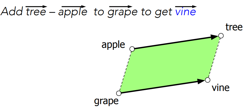 The parallelogram method can solve analogies with both sparse and dense embeddings (Turney and Littman 2005, Mikolov et al. 2013b)