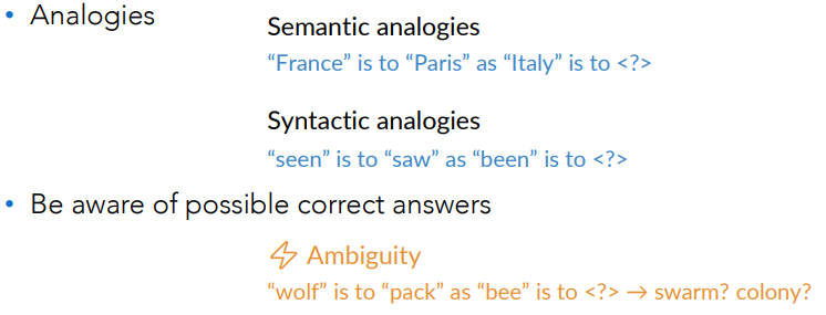 - Intrinsic evaluation = “How well do these embeddings capture meaning on their own?”