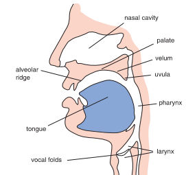 After the larynx, the air enters the vocal tract via the pharynx. It is the pushed out through the mouth and/or the nose. Most consonant sounds are produced by using the tongue and other parts of the mouth.