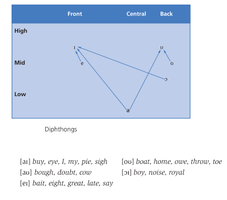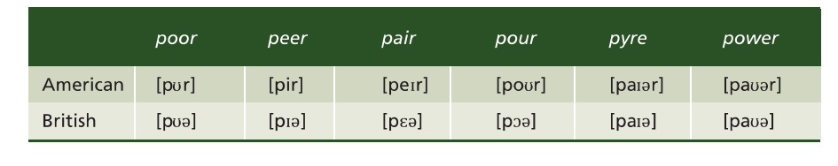First sounds of diphtongs in American English. The pronunciation of some diphtongs in Southern British English is different from North American English.