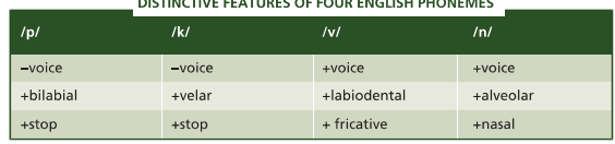The descriptive terms we use to talk about sounds can be considered features that distinguish each phoneme from the next.