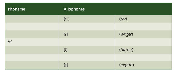 However, all these articulation differences in [t] sounds are less important to us than the distinction between the [t] sounds in general and the [k] sounds, or the [f] sounds, or the [b] sounds, because there are meaningful consequences related to the use of one rather than the others.