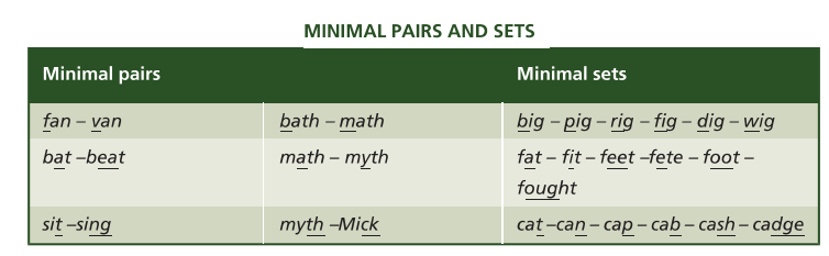 - If we change one sound in a word and there is a change of meaning, the sound are distinct phonemes.
