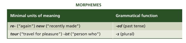 - hyponymy (pine/tree): When the meaning of one form is included in the meaning of another.
