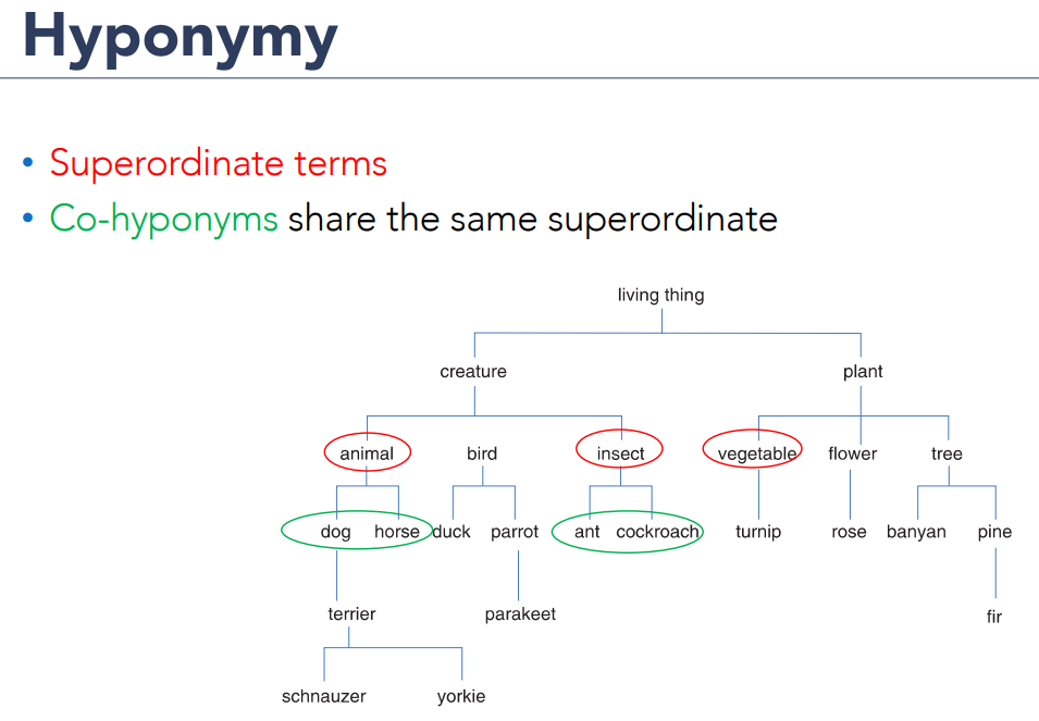 Hyponymy: