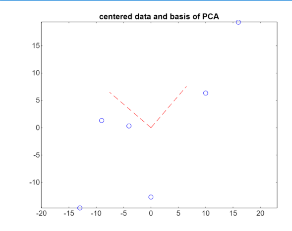 The columns of the matrix PC are the first and second principal components. The versors of the two basis are visualized in red:
