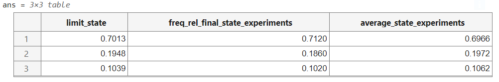 If i take the average frequencies along all the 1000 experiments, i see that this is very close to the frequencies that i have record along the states. So all the vectors are an approximation of the limit state.