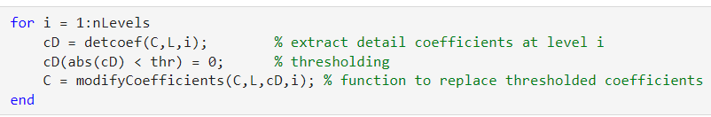 Then, to apply the denoise we set any entry below that threshold, in the detail vectors, to 0 :