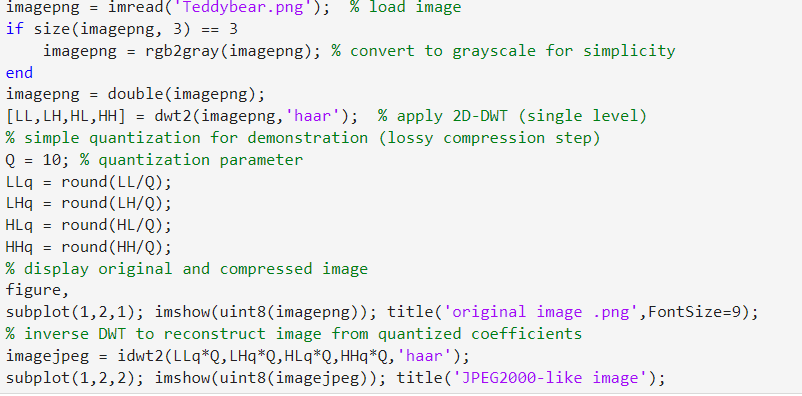 We discuss a simple educational Matlab code that demonstrate a basic implementaton of JPEG2000-like compression using 2D-DWT
