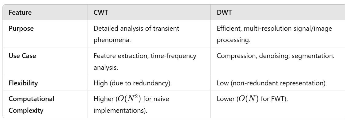 The choice between DWT and CWT depends on the application requirements.