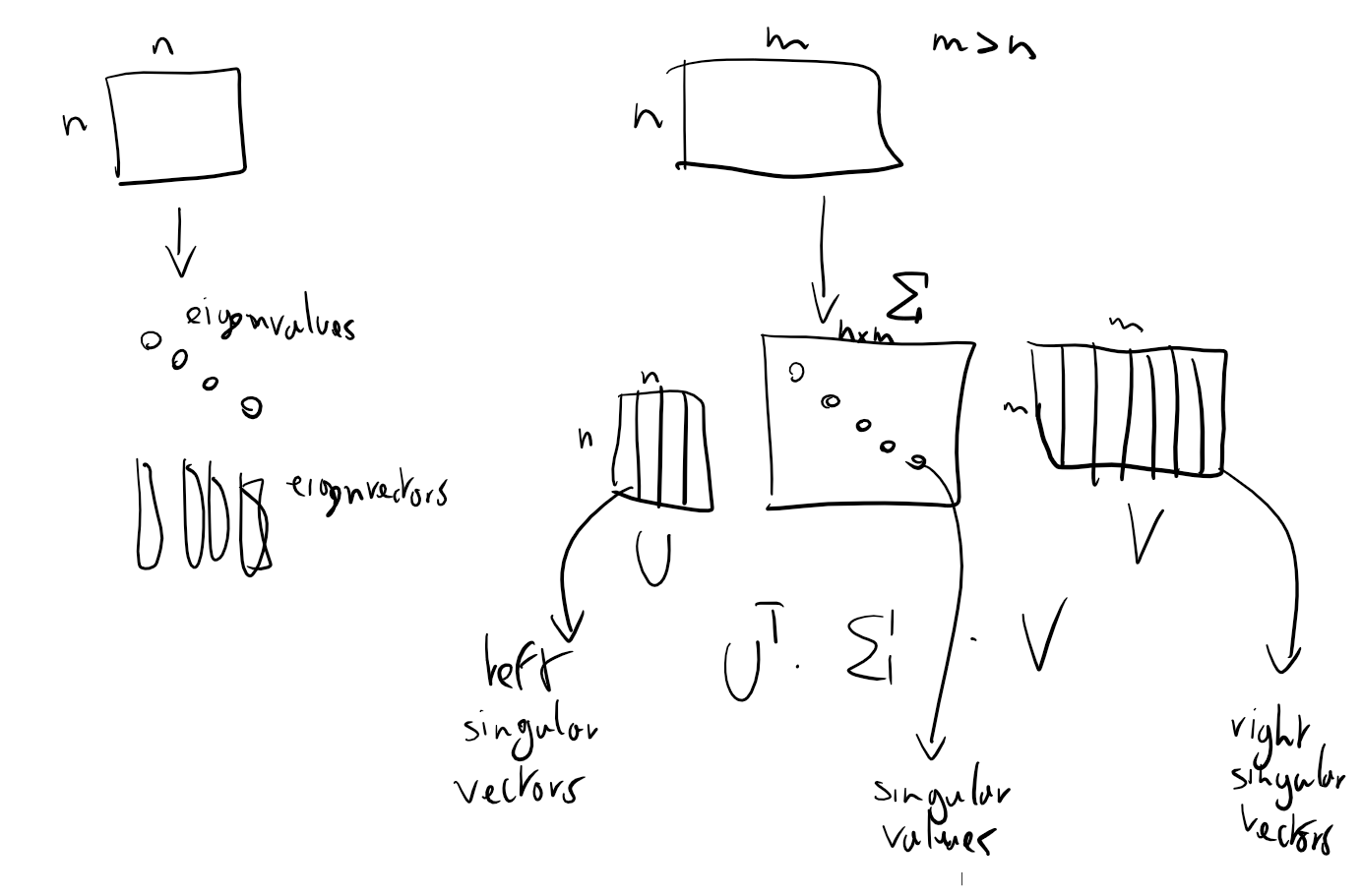 Another thing to notice is that only the first eigenvectors of coincide with the first columns of and the squares of the singular values coincide with the first eigenvalues of (the remaining (m-n) are zero). This happens when