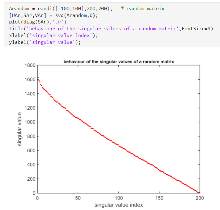 Most of the data science is based on the fact that, in general, the singular values of real application matrix decay very fast. (Go to zero)